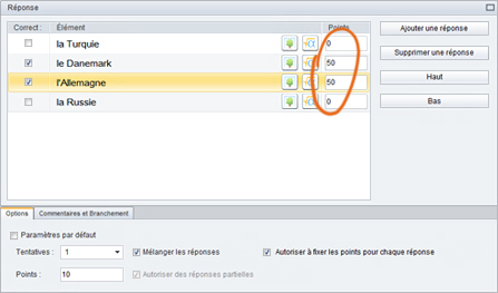 La notation est elle aussi personnalisable, ce qui permet d’évaluer les apprenants de façon équitable et juste. Vous avez le choix d’appliquer les mêmes paramètres de notation pour le quiz complet. Il est également possible de les modifier différemment pour chaque question, par exemple en fonction de leur difficulté. Vous pouvez paramétrer la valeur de chaque question, en points positifs ou négatifs.