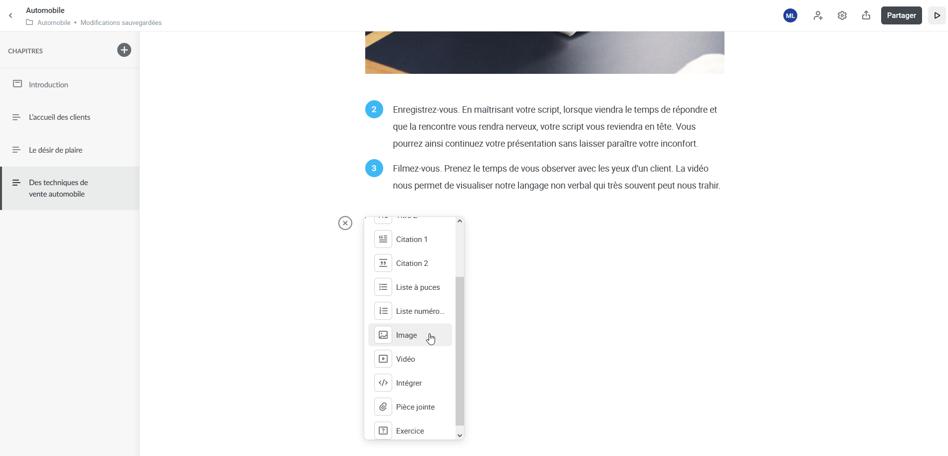 1. Cliquez sur l’icône « + » et sélectionnez « Image ».