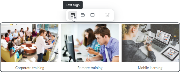 Dans votre espace en ligne de création de micro-cours iSpring Space, vous pouvez désormais organiser plusieurs images dans une même rangée, à la manière d’une galerie. Cela vous aide à illustrer un processus ou à comparer plusieurs éléments. Vous pouvez télécharger 3 images à la suite et y ajouter des légendes.