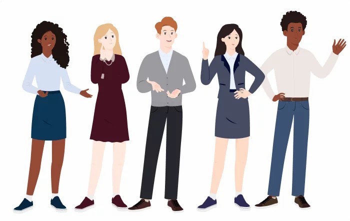 Les nouveaux personnages guideront vos apprenants à travers divers scénarios de travail. Ils peuvent servir de clients, d’employés de banque, de managers, d’enseignants, d’étudiants…
