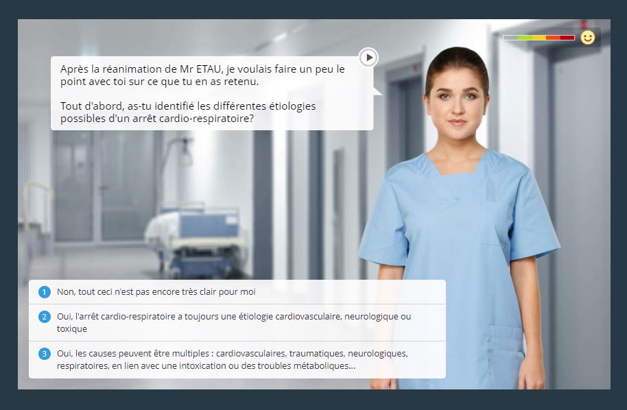 Avant les départs en stage, nous avons une obligation légale de revoir certaines notions en pharmacologie pour plus de sécurité. J’ai alors créé une capsule avec des informations et un quiz final, qu’ils doivent valider pour partir en stage. La traçabilité de score et la remontée dans la plateforme Moodle nous permet d’avoir un tracking intéressant sur ce qu’ils ont suivi, quelle réponse a été incorrecte, etc. »