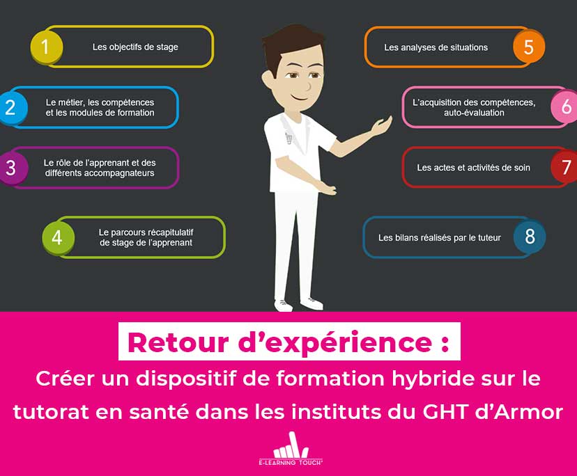 “Être accompagné et travailler avec E-learning Touch’ a permis aux professionnels des instituts de découvrir ce qu’implique la mise en place d’un dispositif de formation hybride, ainsi que les différentes étapes de création d’une capsule vidéo, du synopsis au storyboard, jusqu’à la phase de recettage.”