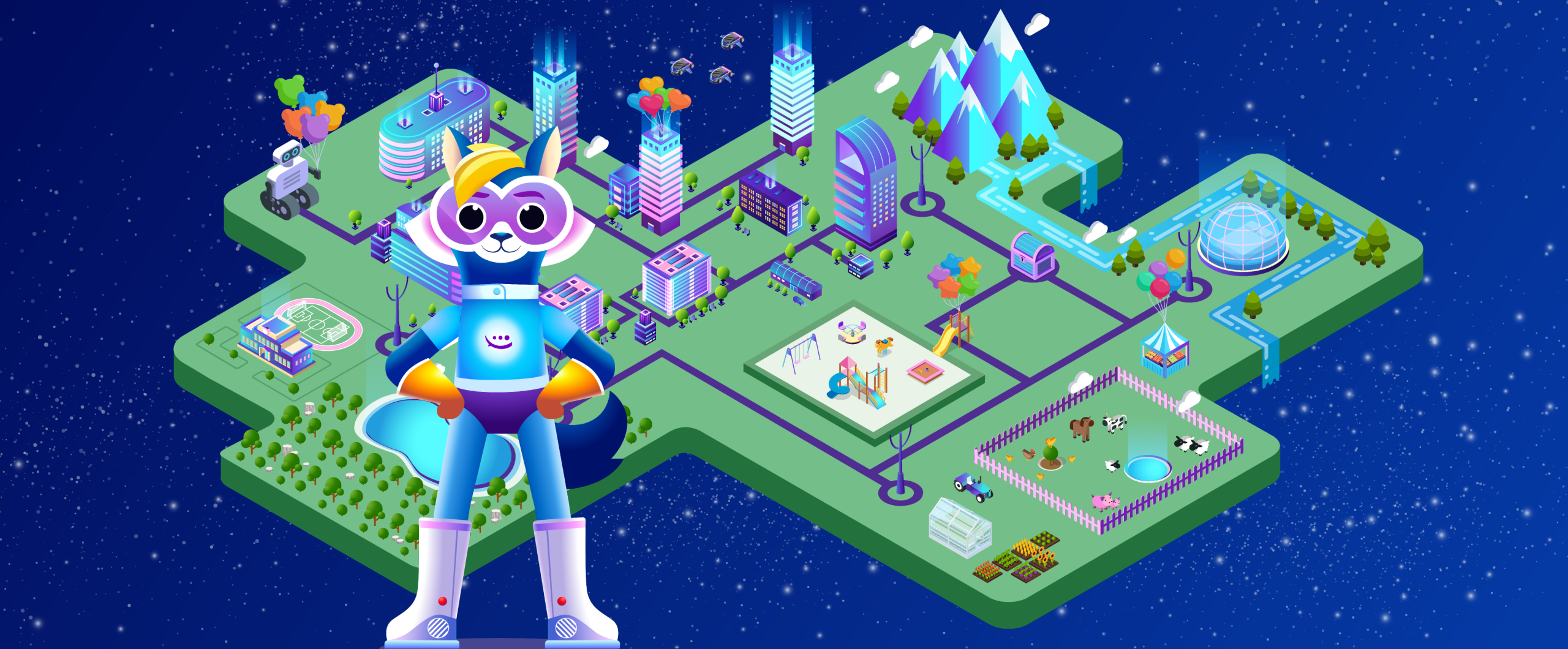 - Gamification de la plateforme et des leçons avec l’intégration des mécaniques de game design : environnement immersif sous la forme d’une carte évolutive, points d’expérience, récompenses, monnaie de jeu (étoiles)…
